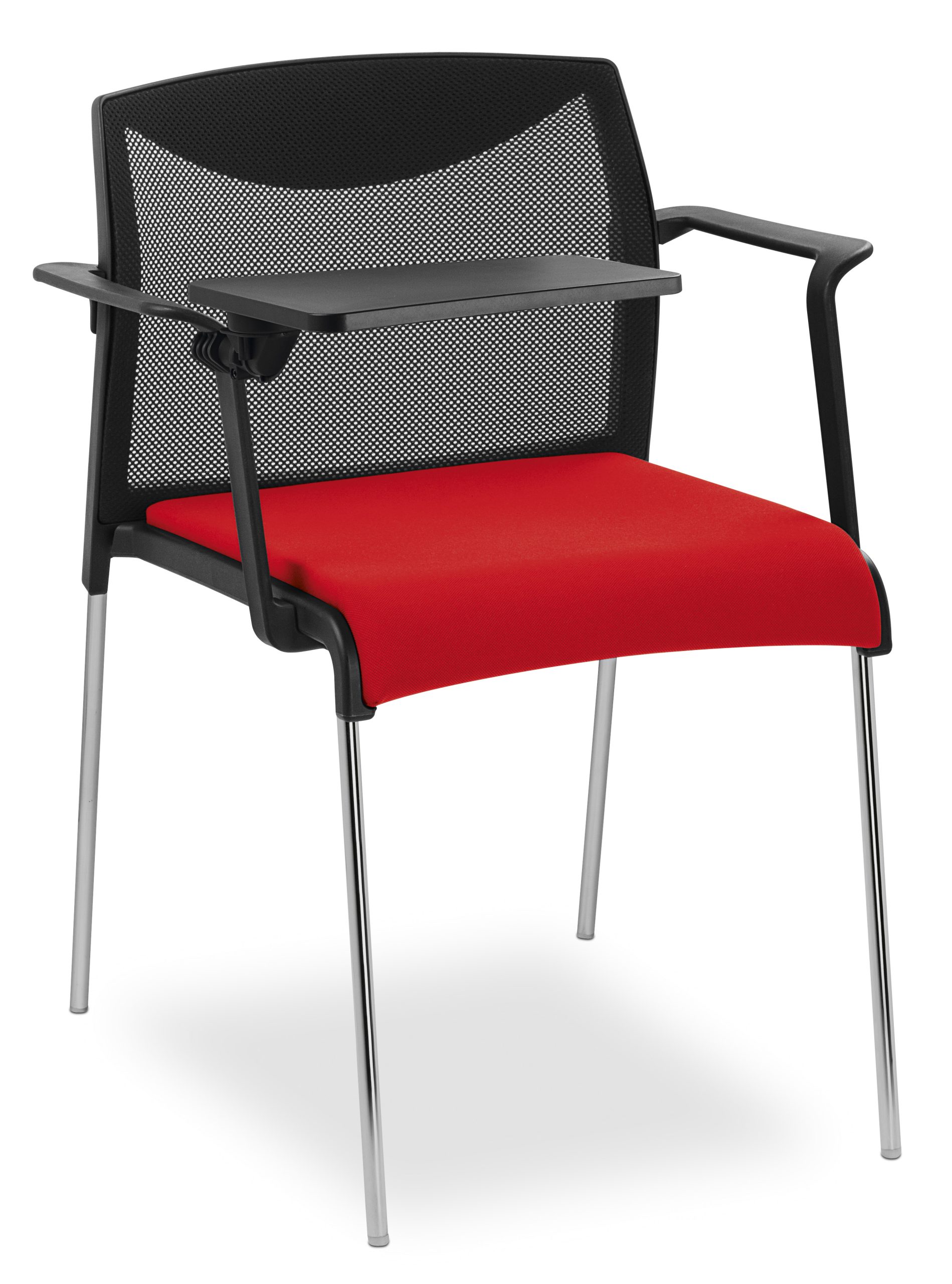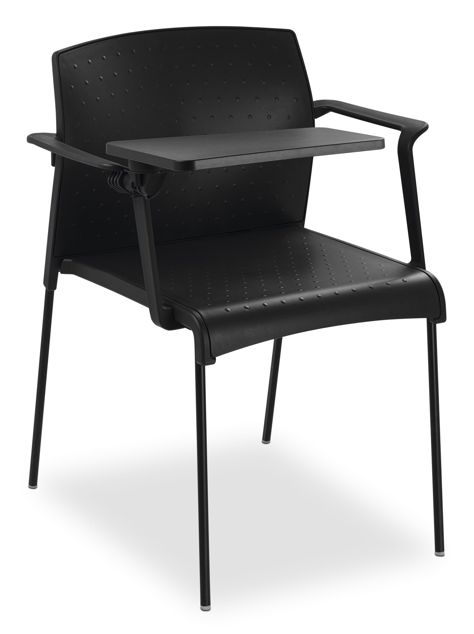 Equipado com prancheta retrátil anti-pânico, o modelo Brent facilita anotações e atividades, otimizando o espaço e proporcionando praticidade sem abrir mão do conforto e da durabilidade.